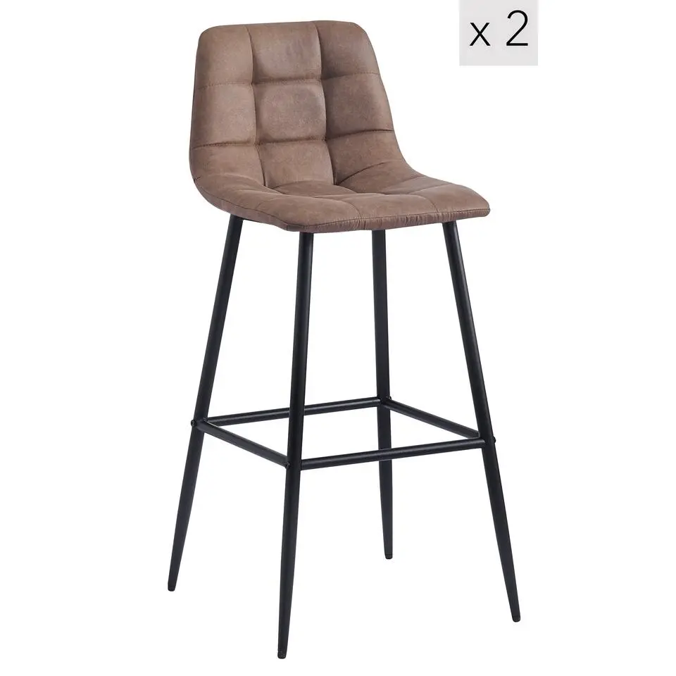 Set van 2 barkrukken van metaal en bruin kunstleer