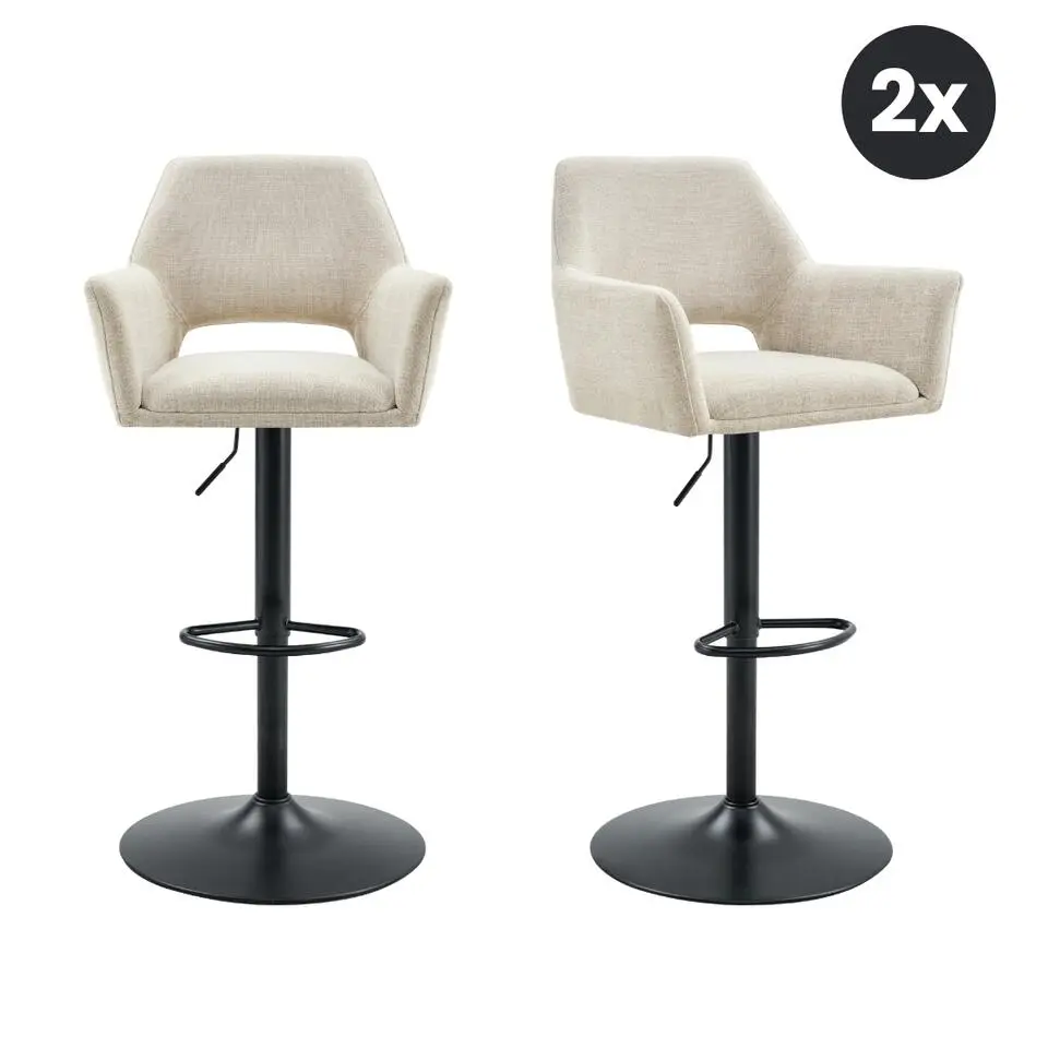 2x Barkruk Tess Draaibaar - Stof Naturel Beige