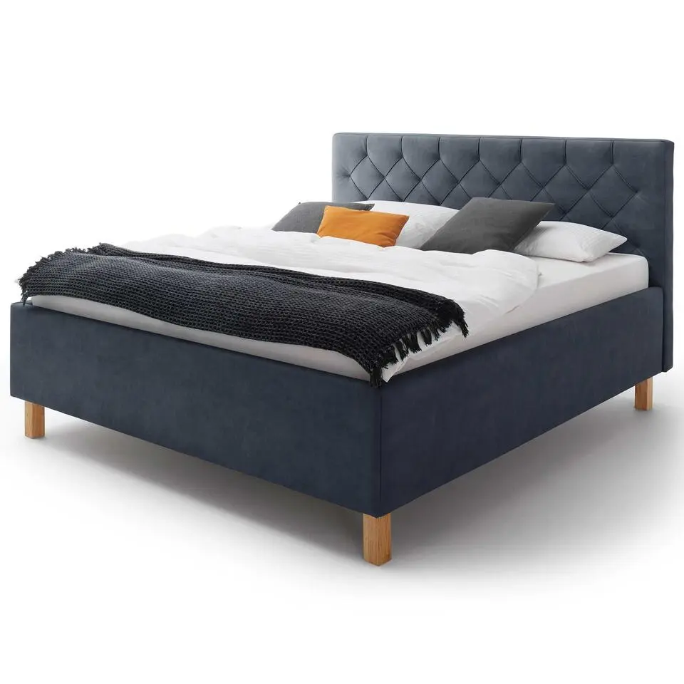 Bed San Marino 160x200cm met opbergruimte kunstleer - blauw/eik