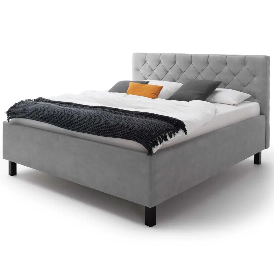 Tweepersoonsbed Estee 180x200cm - lichtgrijs/zwart