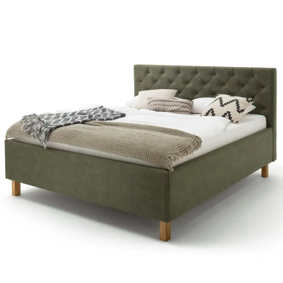 Gecapitonneerd bed Cézanne 180x200cm met opbergruimte - khaki