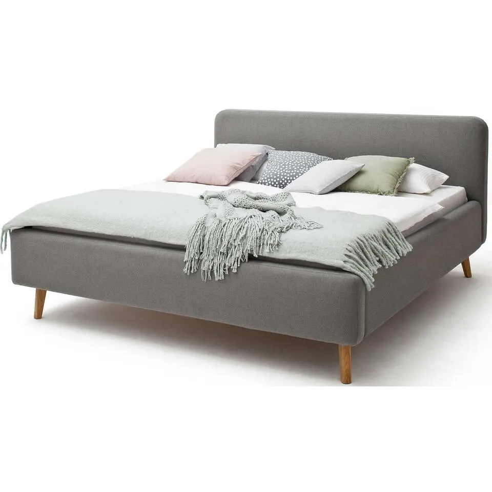 Tweepersoonsbed Estee 180x200cm - lichtgrijs/eik