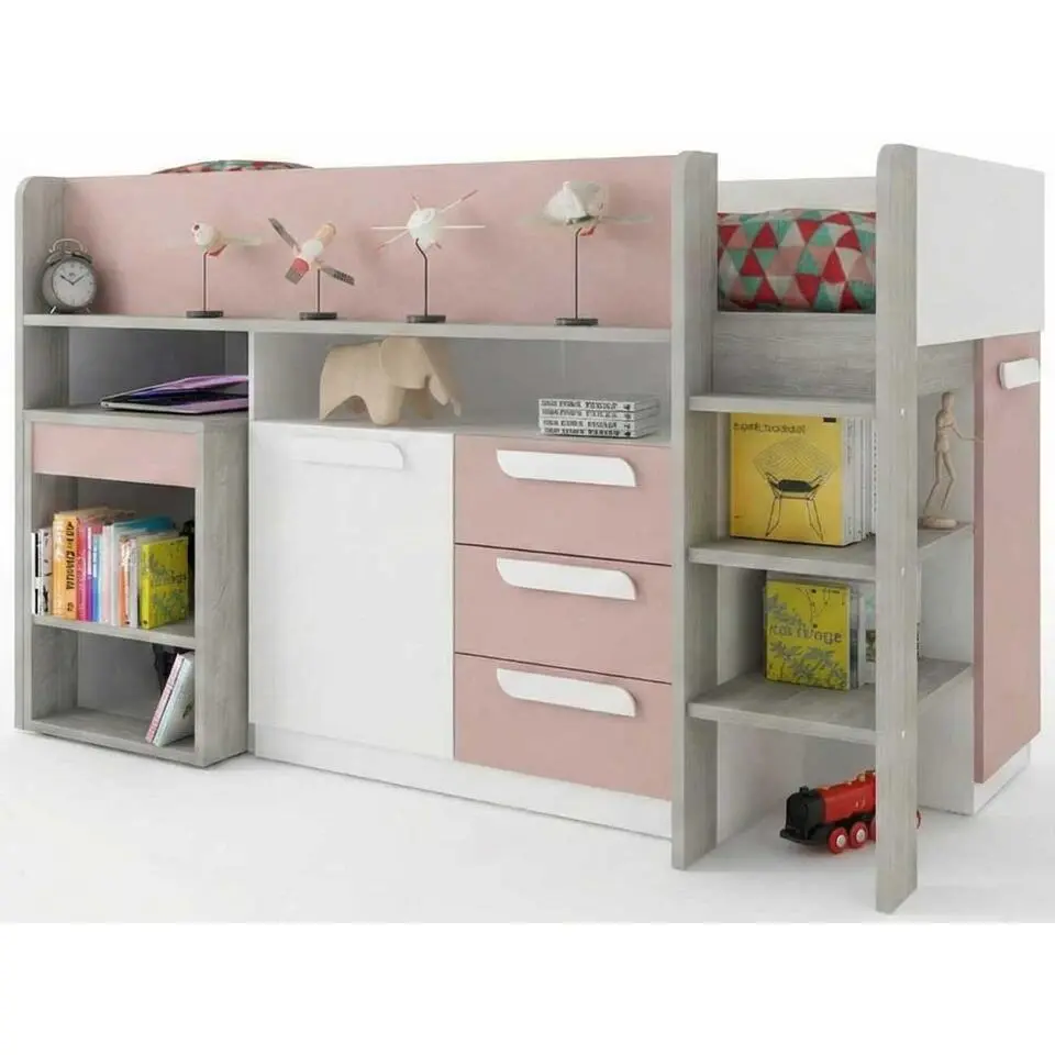 Halfhoogslaper Beau 90x200 met bureau - oudroze
