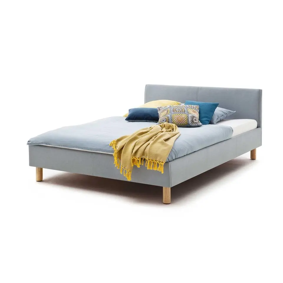 Gestoffeerd twijfelaar bed Amber - ijsblauw