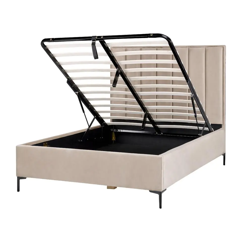 MIRIBEL - Tweepersoonsbed - Beige - 140x200 - Fluweel