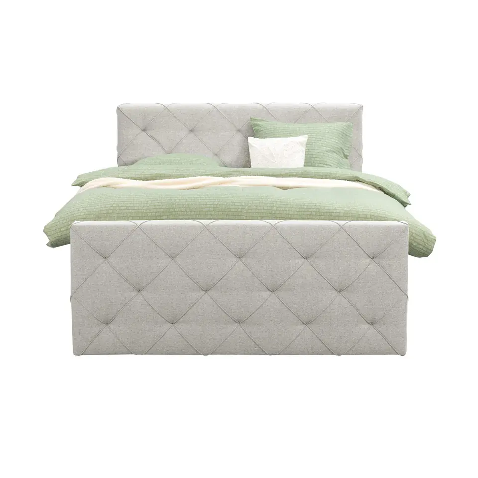 Boxspring Liv geruit - ecru - 140x200 cm - vierkante poot