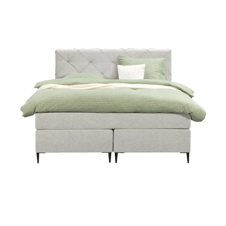 Boxspring Liv geruit - ecru - 140x200 cm - slanke poot