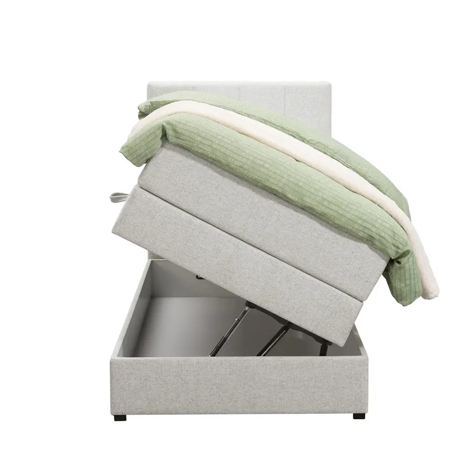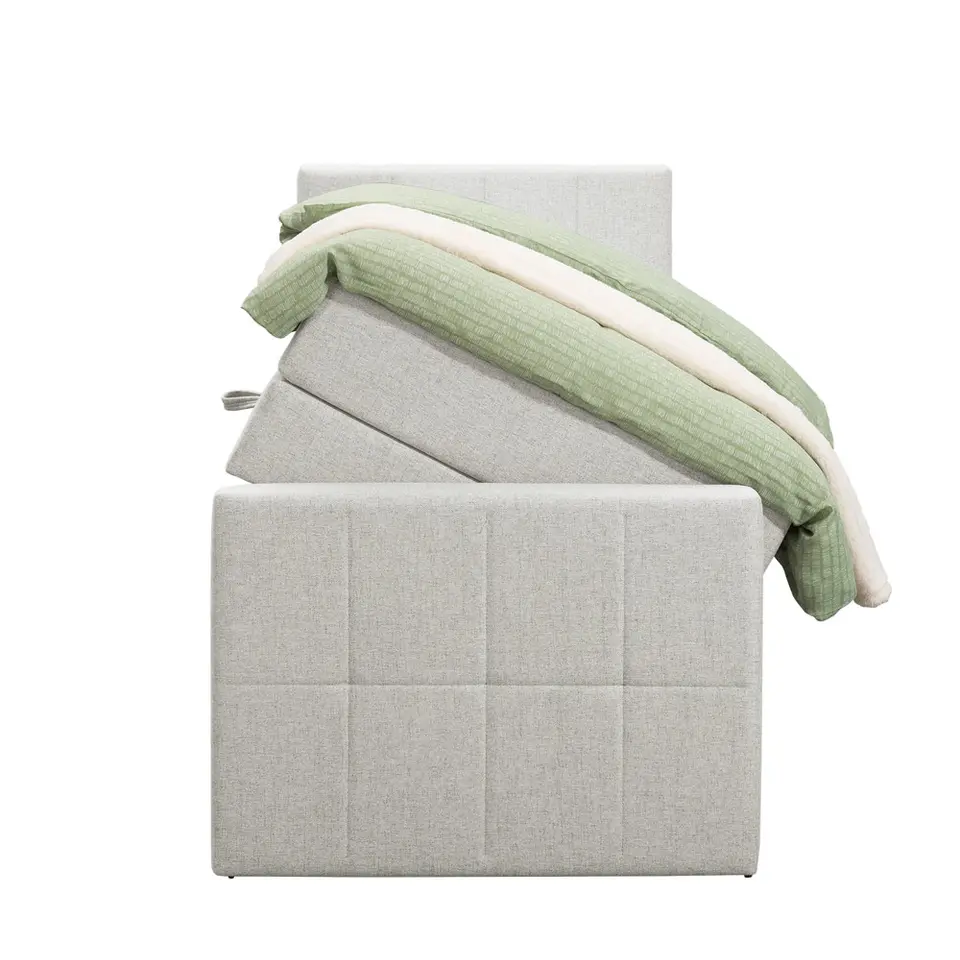 Boxspring met opbergruimte Liv geblokt - ecru - 90x200 cm