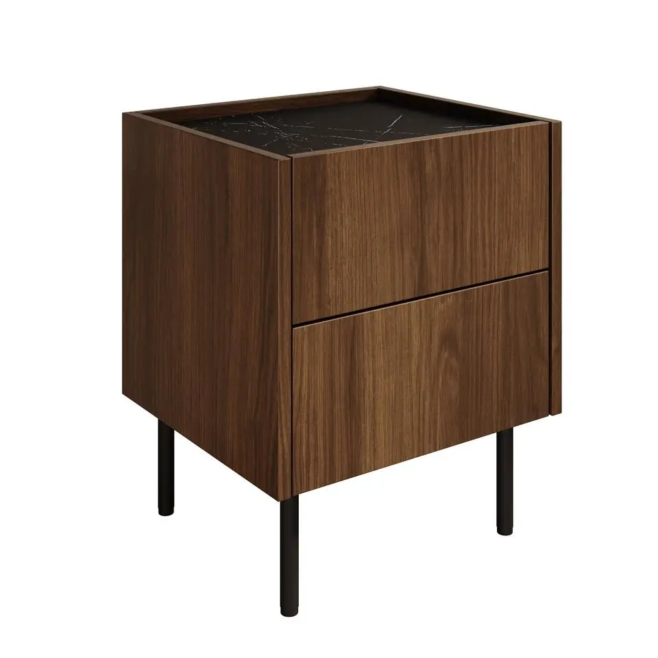 Massief Hout Astor Nachtkastje, 2 Lades, Donkerbruin