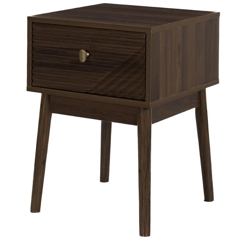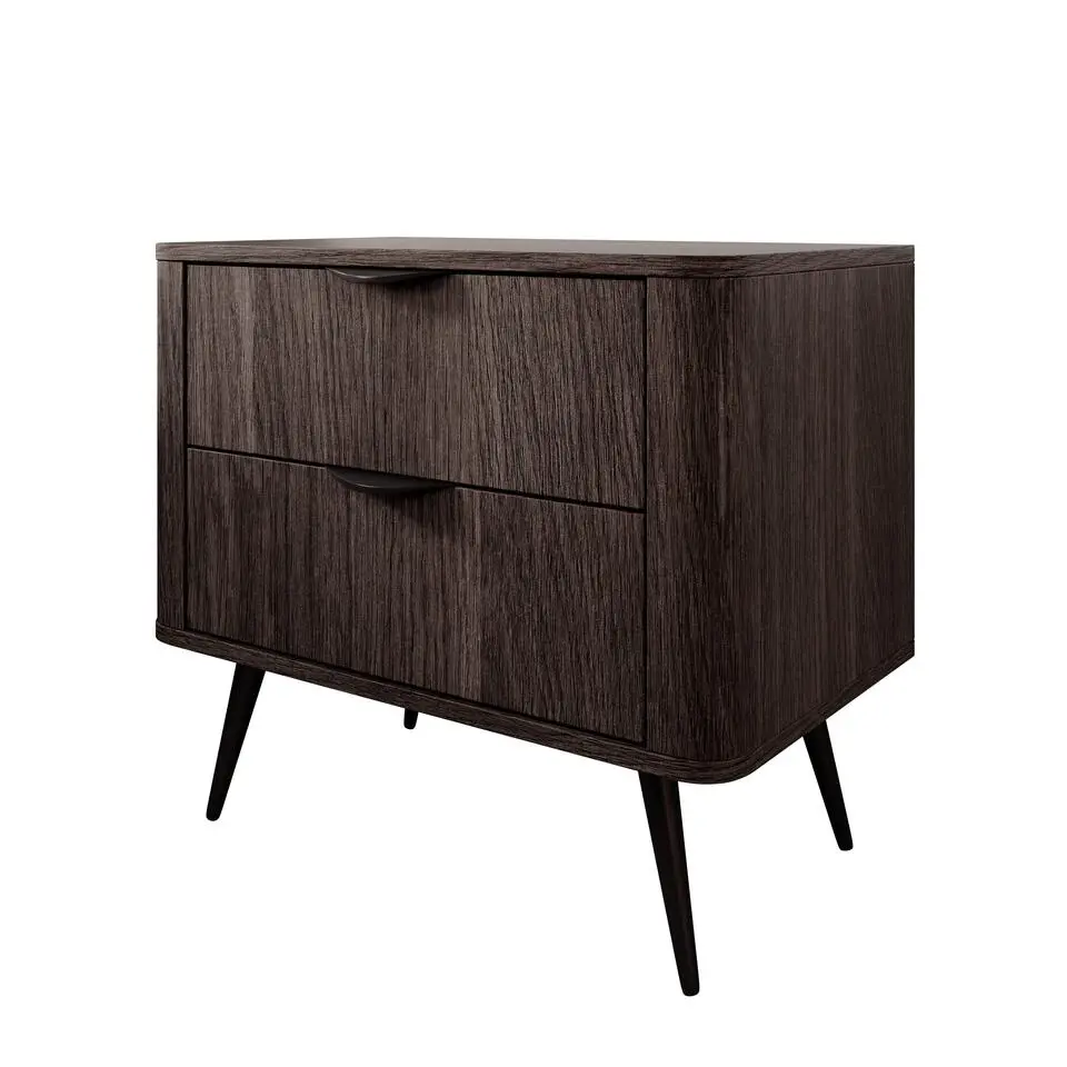 Marlowe Geribbelde Nachtkastje, 2 Lades, Donkerbruin