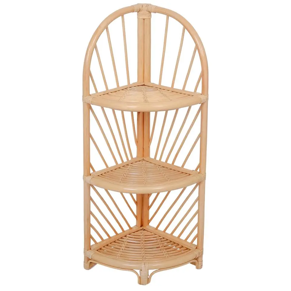 Hoekrek met 3 niveaus van natuurlijk rotan
