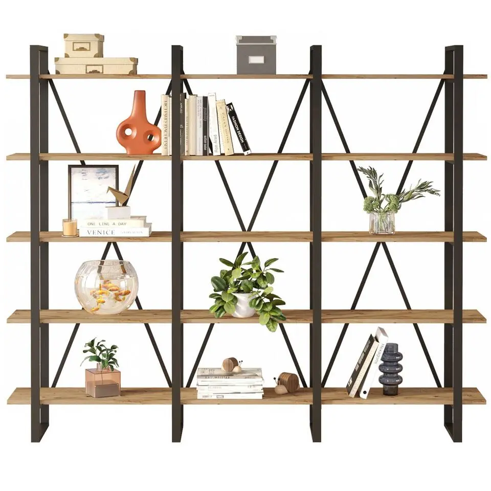 Para Home Boekenkast met stalen frame bruin en zwart
