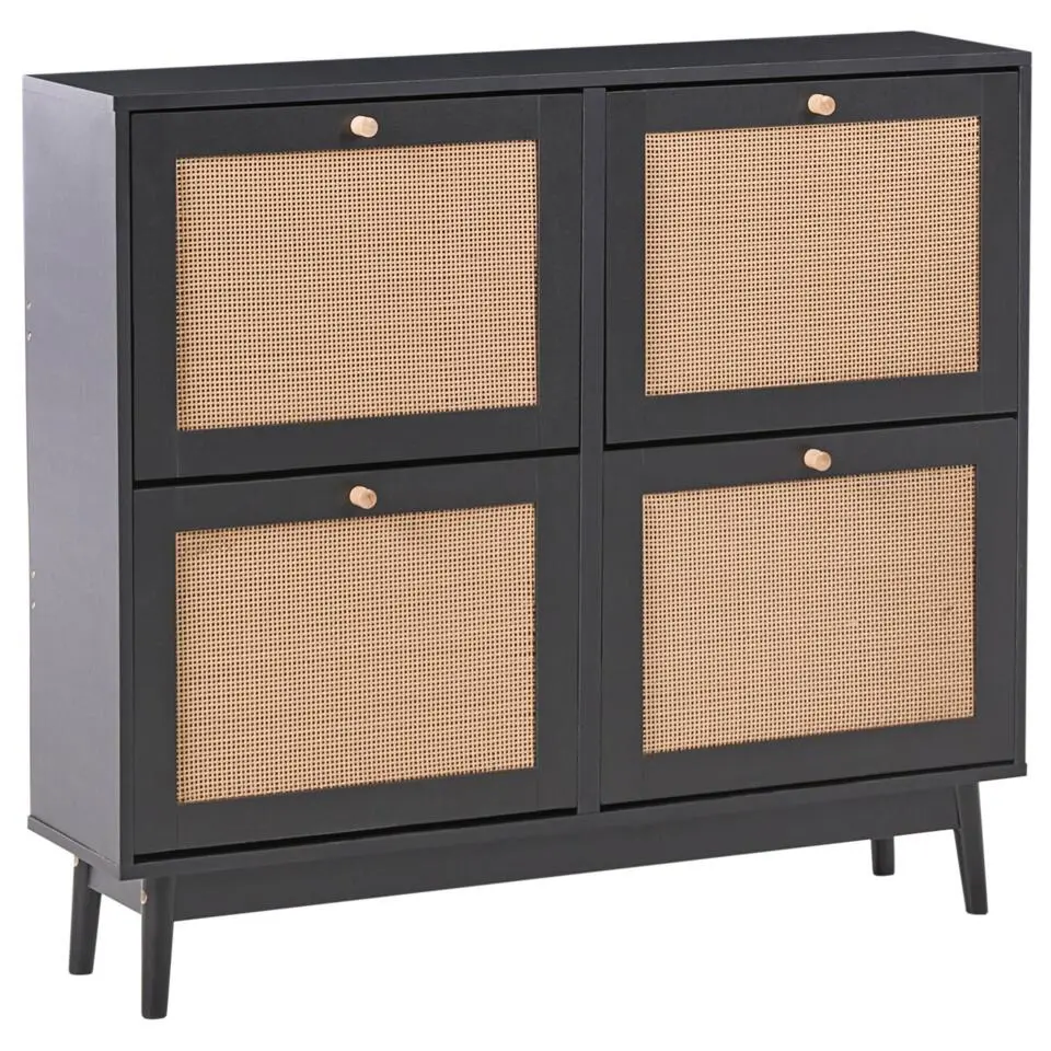 ARMIDALE - Schoenenkast 4 vakken - Zwart - Vezelplaat