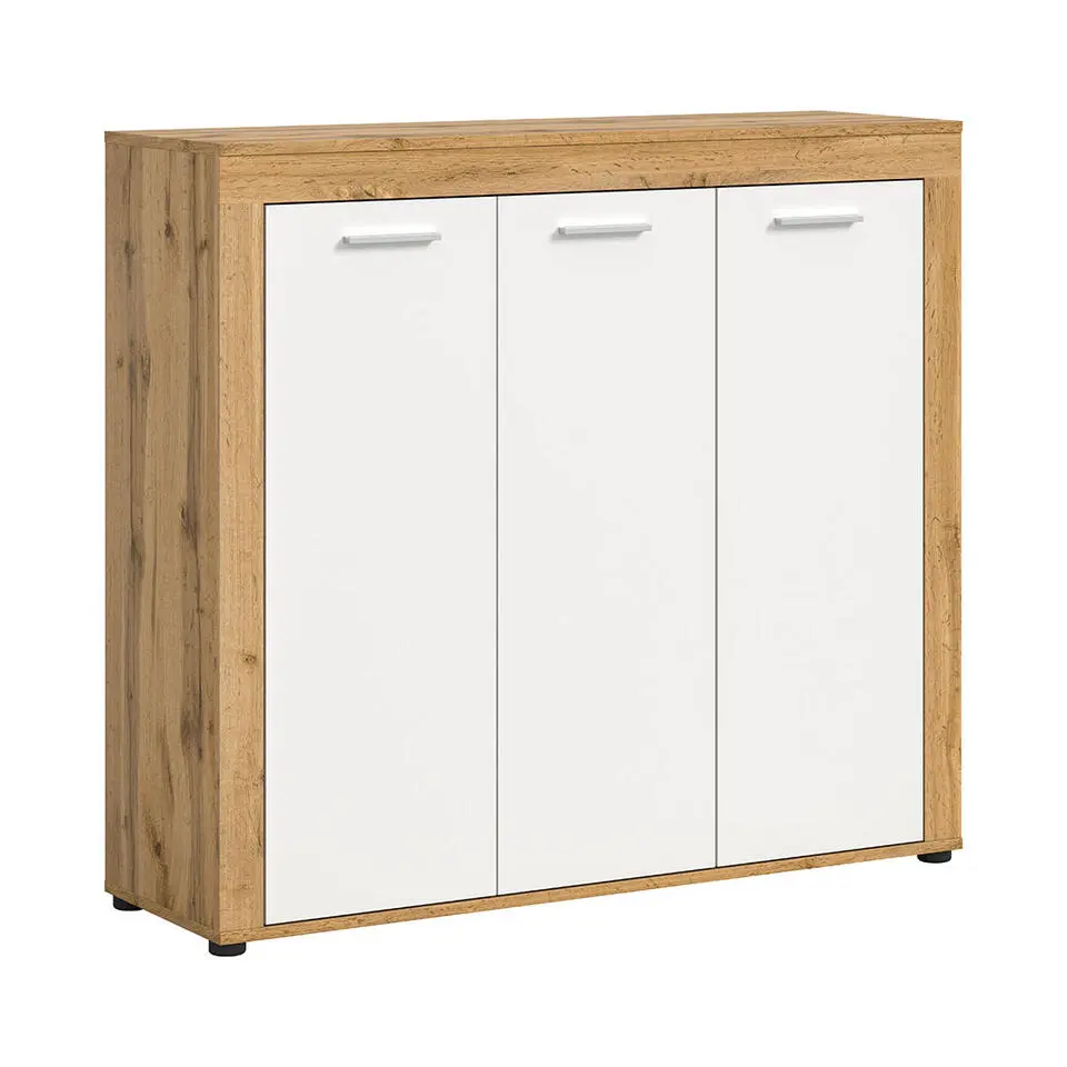 Hioshop Jam schoenenkast 3 deuren wit- eik decor