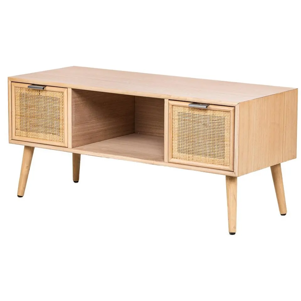 TV-meubel met 2 laden van hout en rotan