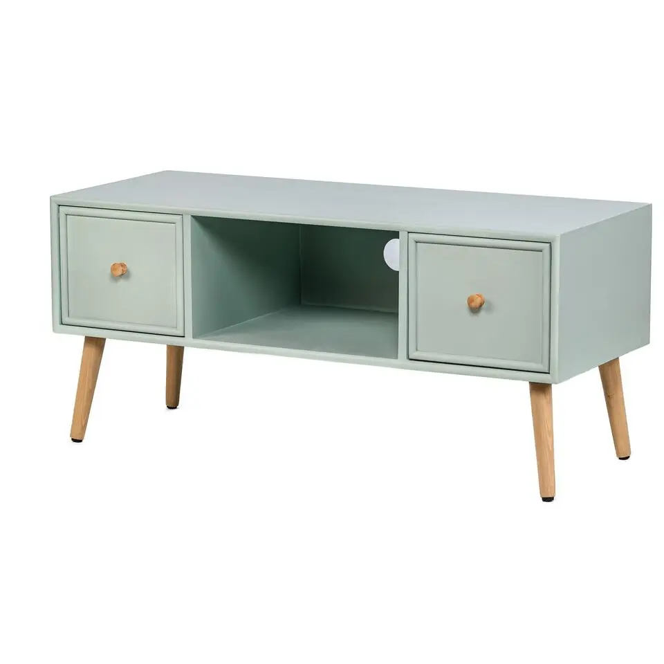 TV-meubel met 2 laden van massief hout in mintgroen