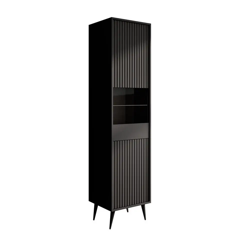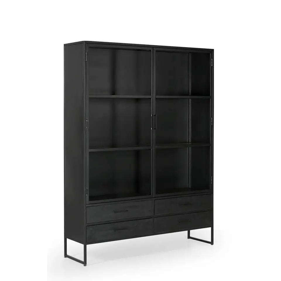 LykkeHome vitrinekast Kaya zwart metaal 90x40x190cm