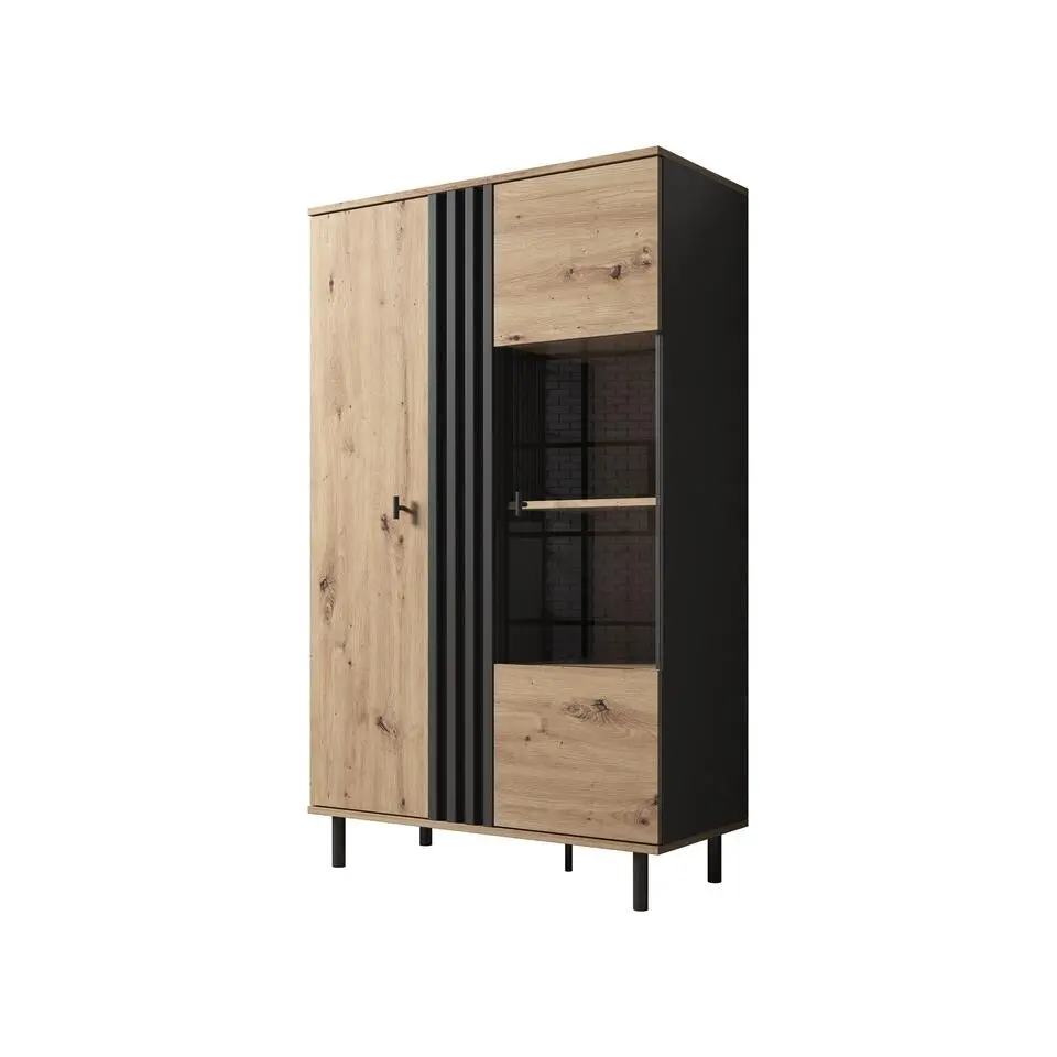 Meubella - Vitrinekast Ozzy - Eiken - Zwart - 60 cm