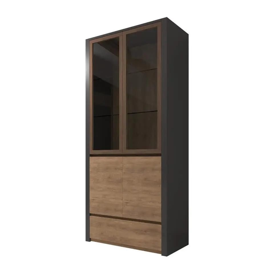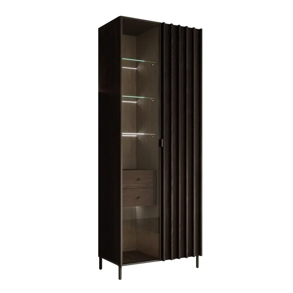 Meubella - Vitrinekast Paz - Donkerbruin eiken - 73 cm
