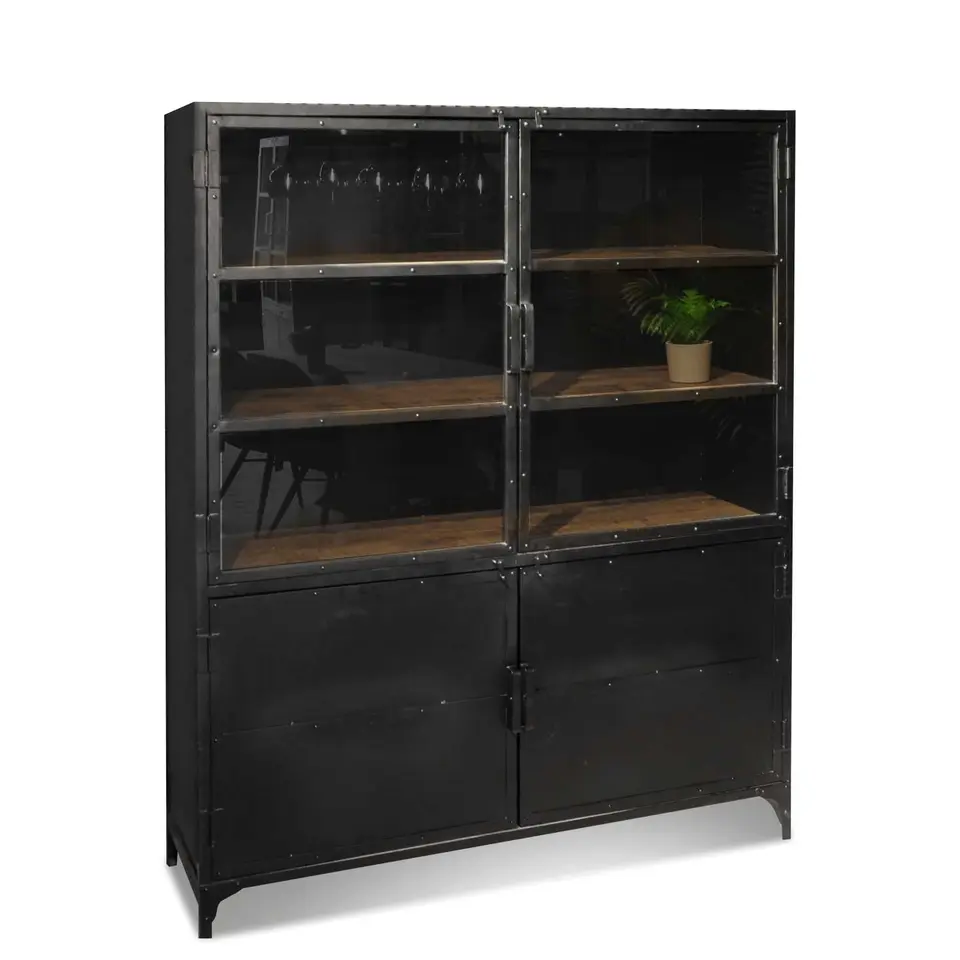 Vitrinekast Jaxx 4 deuren - rustiek bruin/zwart
