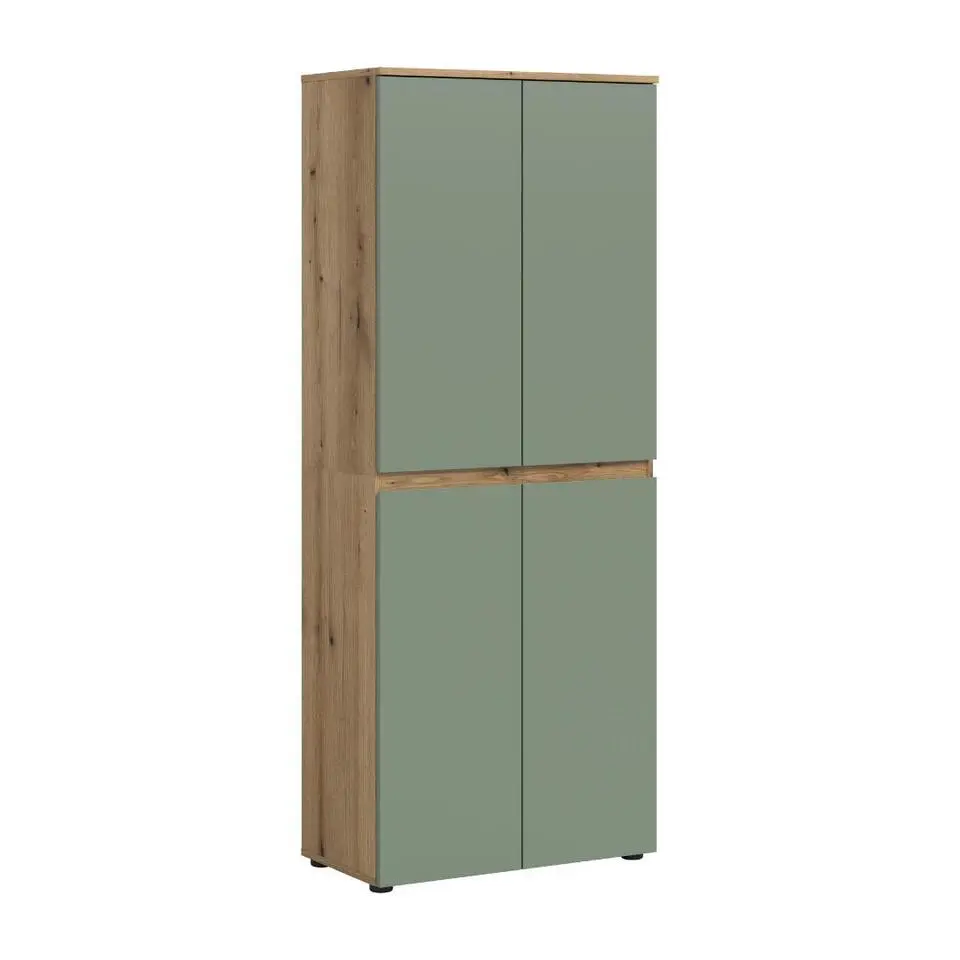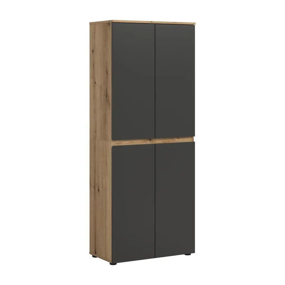 Hioshop Canu kledingkast 4 deuren grijs- eik decor