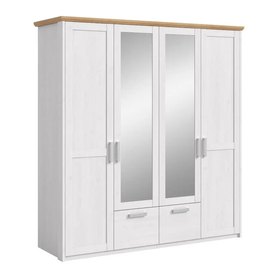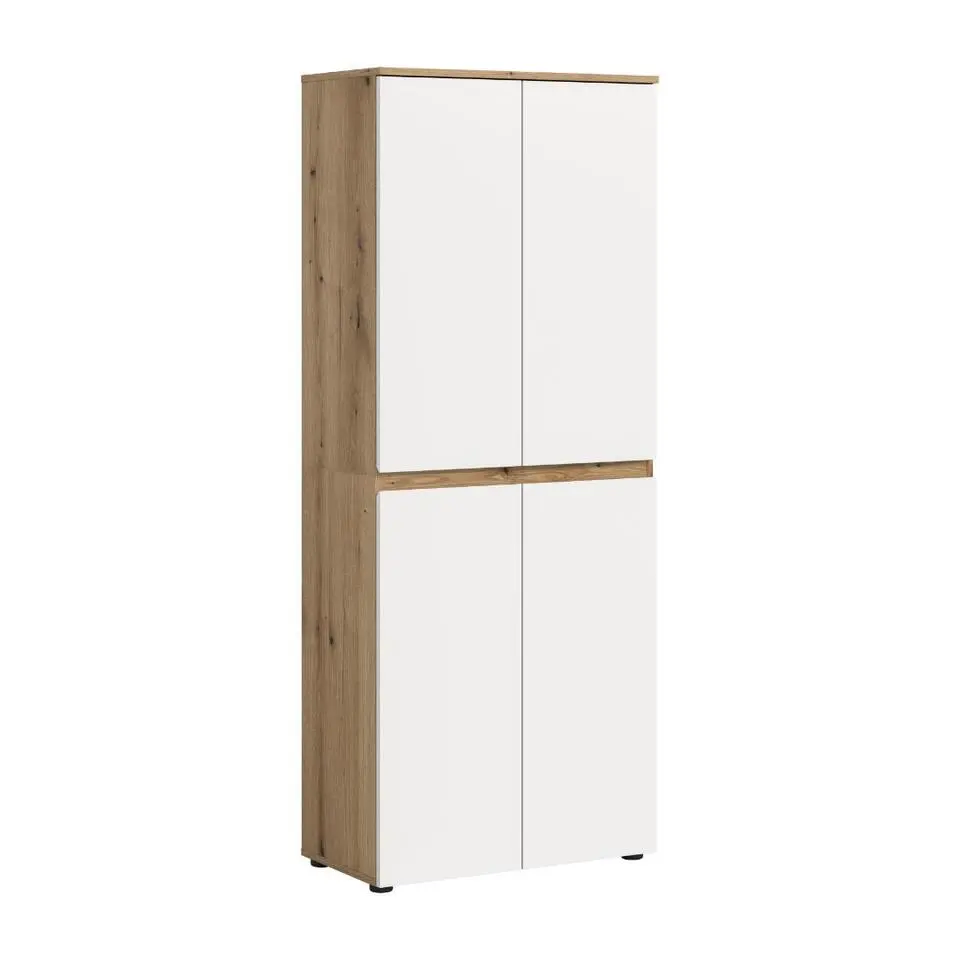 Hioshop Scarpa kledingkast 4 deuren eik decor- wit
