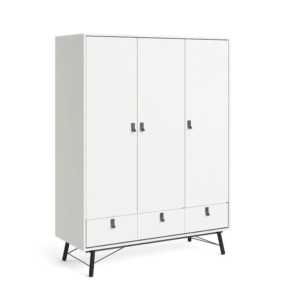 Hioshop Rye Garderobe 3 deuren- 3 laden mat wit