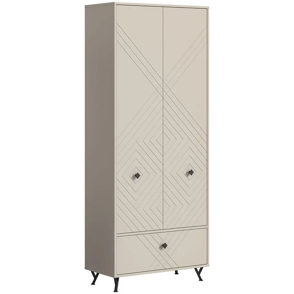 Hioshop Notes kledingkast 2 deuren 1 klepdeur mat beige
