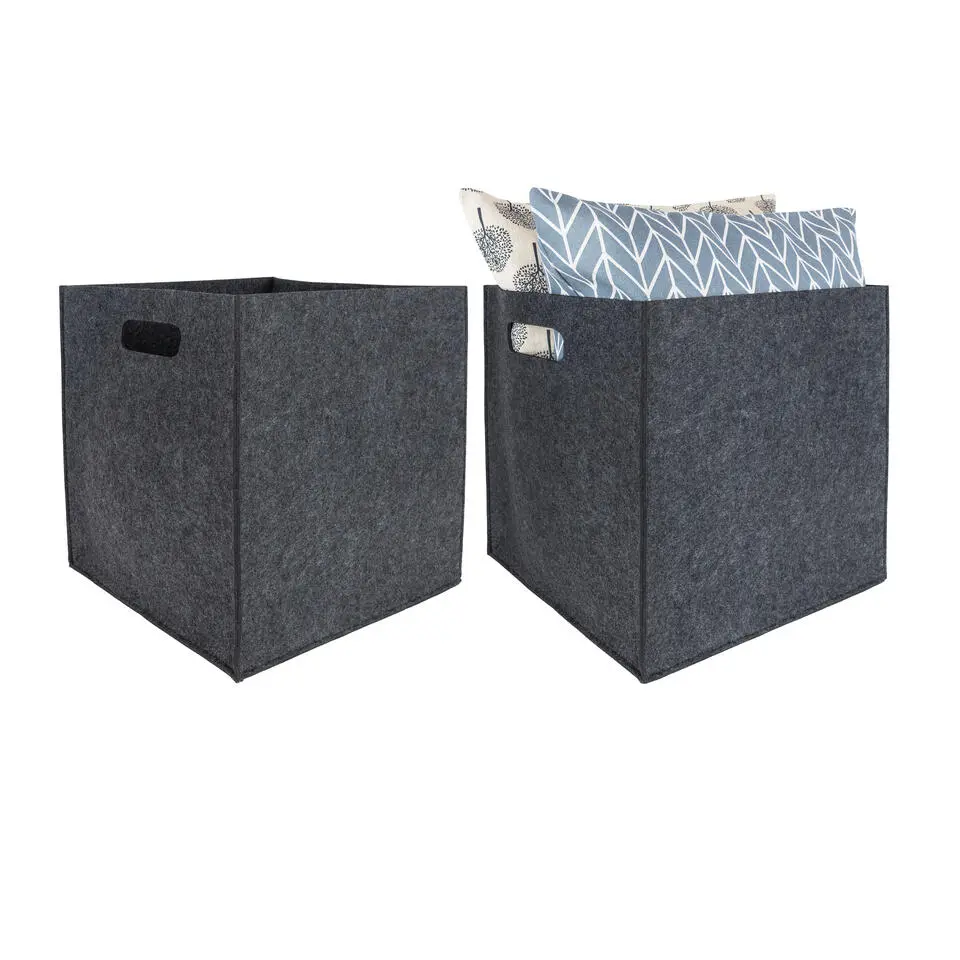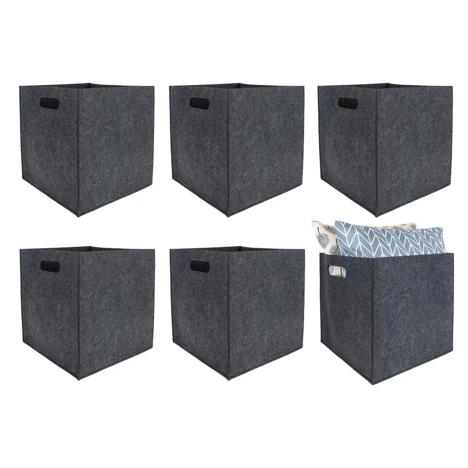 QUVIO Opbergbak vilt vierkant - Set van 6 - Grijs