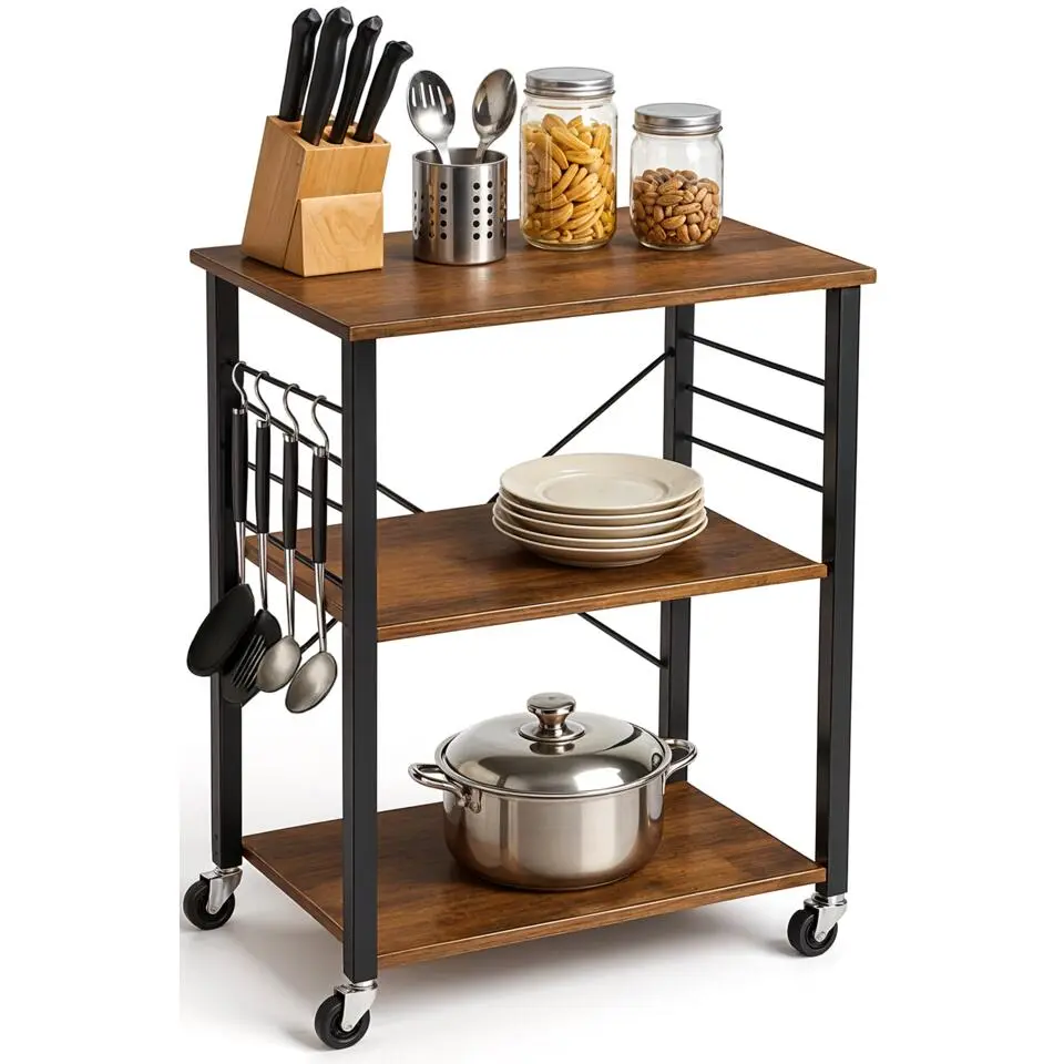 Keukentrolley Bill 2 legplanken - rustiek bruin/zwart