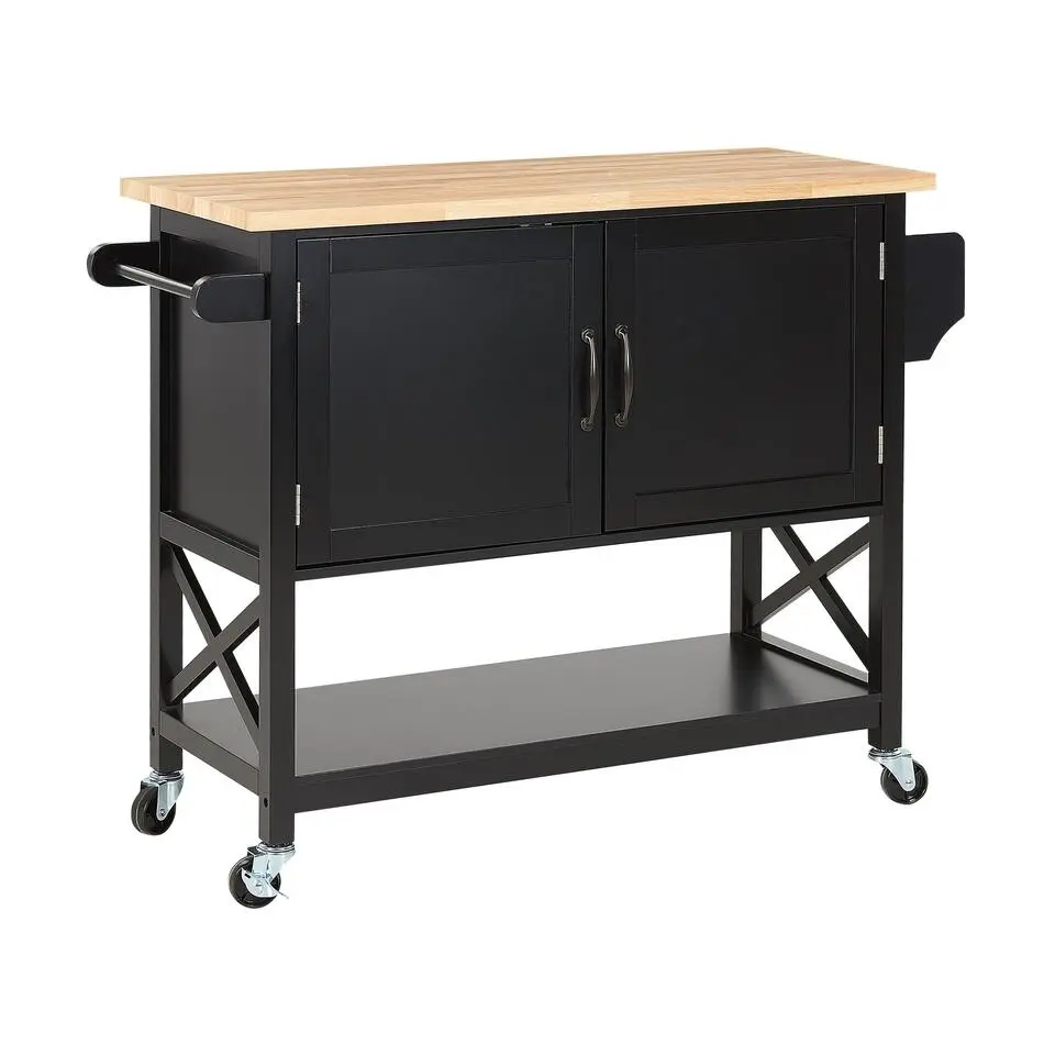 vidaXL - Keukentrolley - Zwart - Bewerkt hout