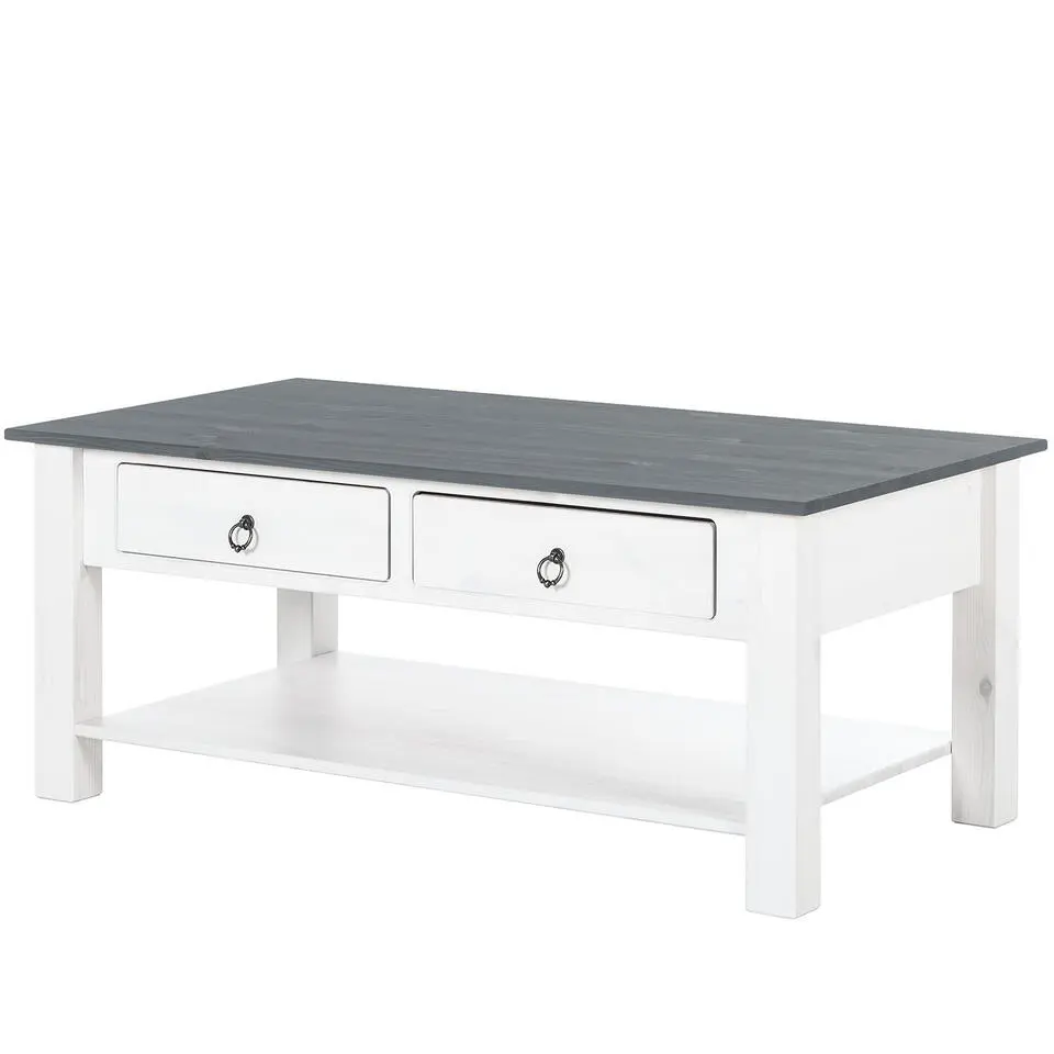Ines - Salontafel met 2 laden wit en grijze grenen