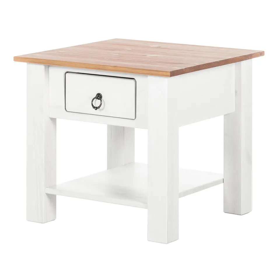 Ines - Salontafel met 1 lade wit grenen en honing