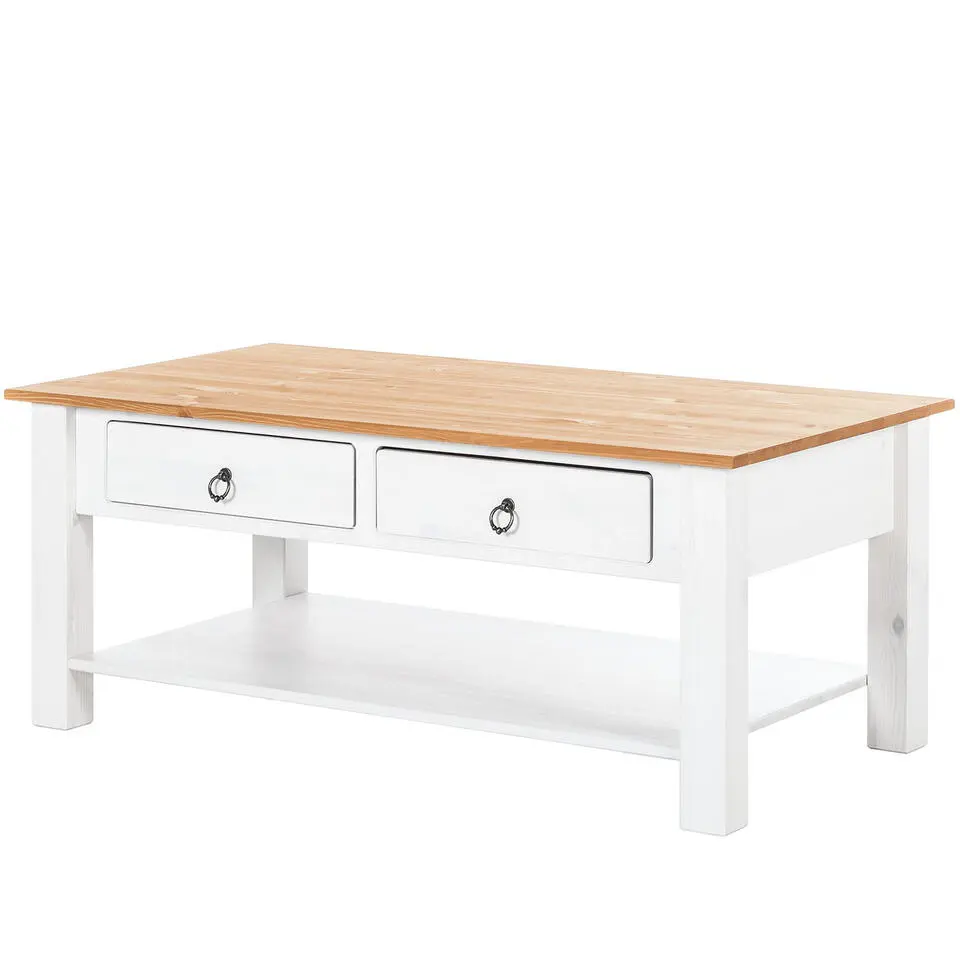 Ines - Salontafel met 2 laden wit grenen en honing