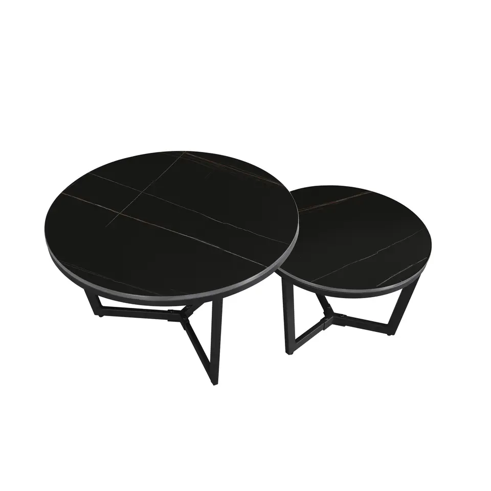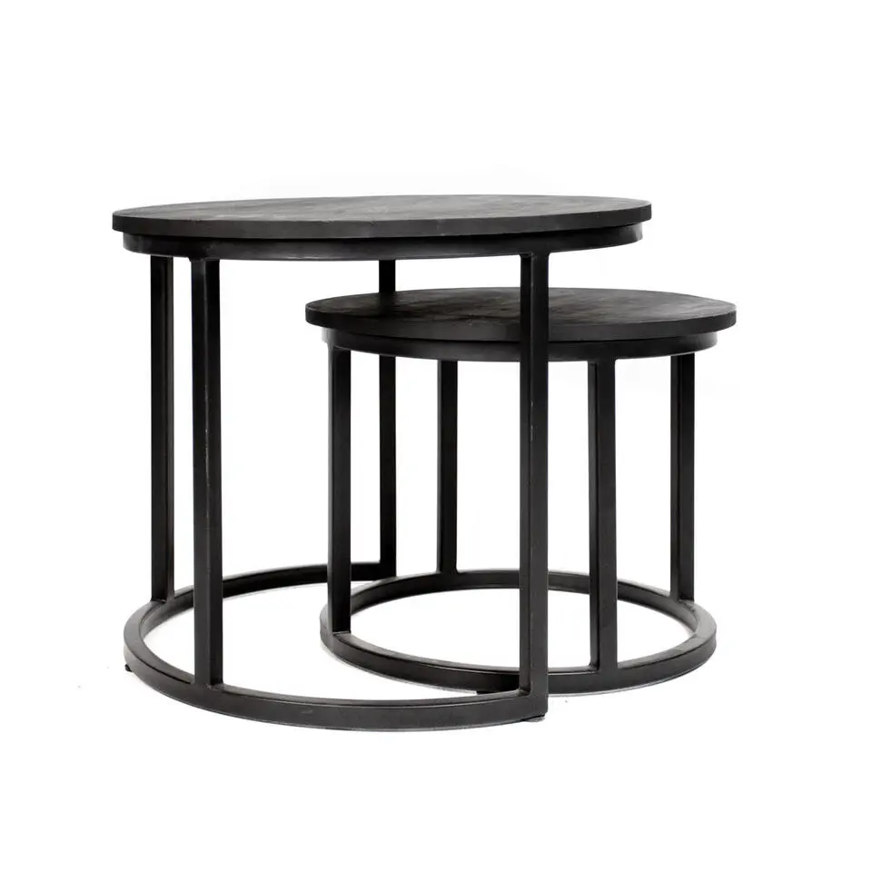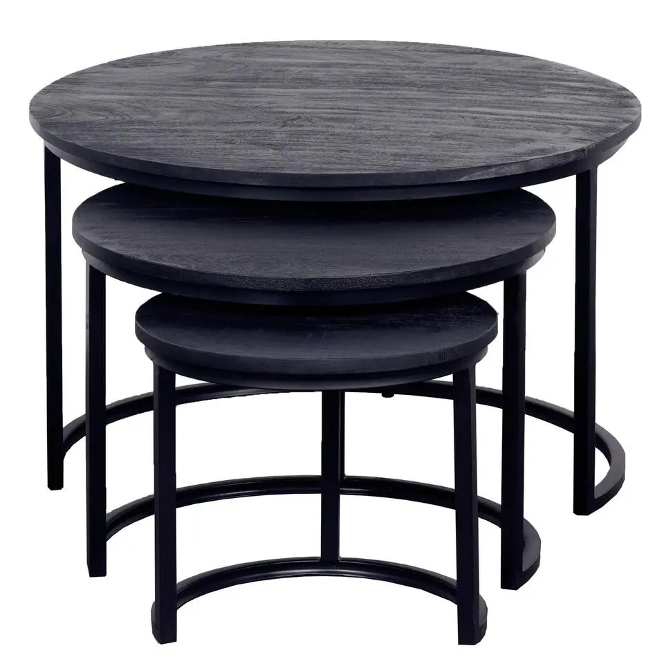 Salontafel Rond - Mangohout Zwart - Set Van 3 - Tres
