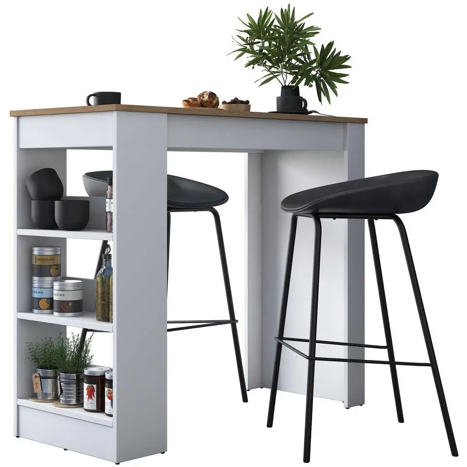 Bartafel Joel - met vier barkrukken - eikdecor/zwart