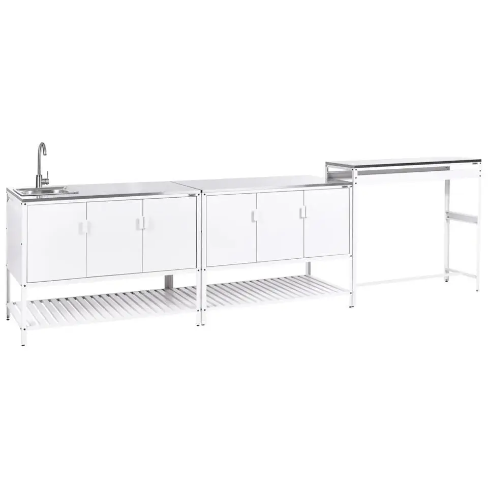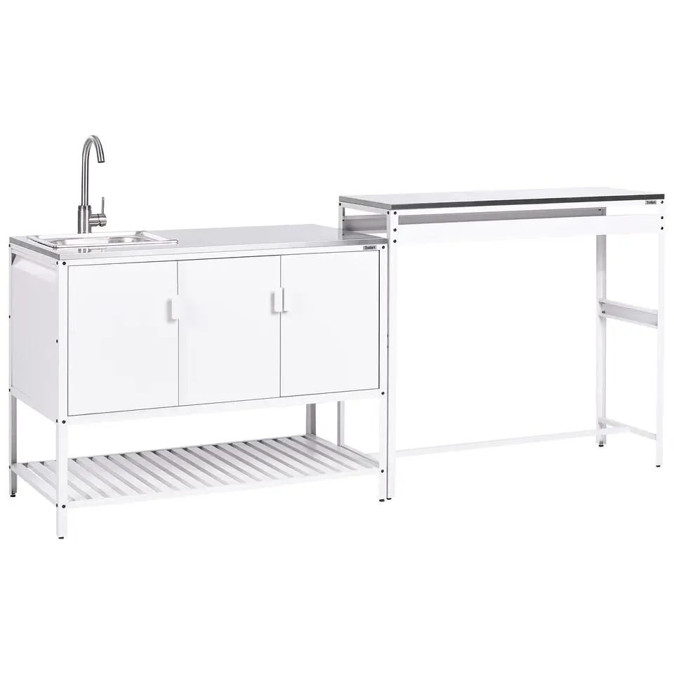 MAENZA - Tuinkeukenset 3-delig met spoelbak - Wit - Staal