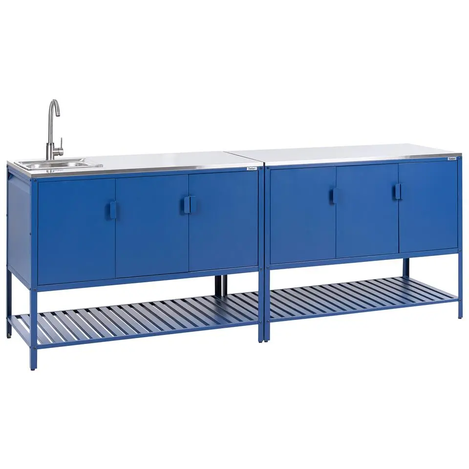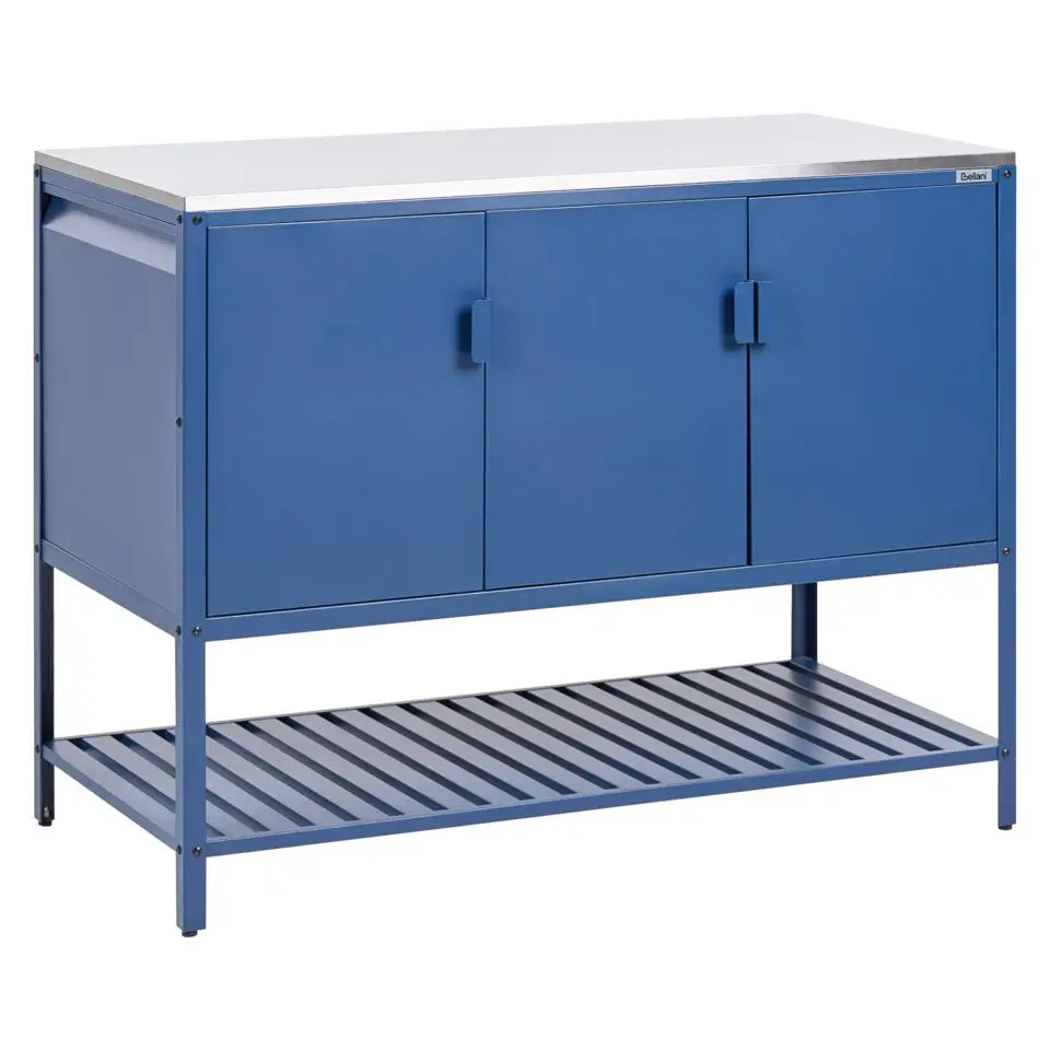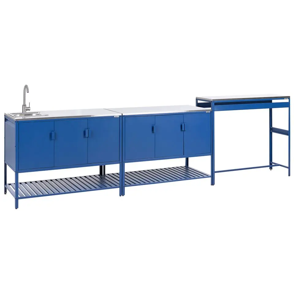MAENZA - Buitenkeukenkast 3-deurs - Blauw - Staal