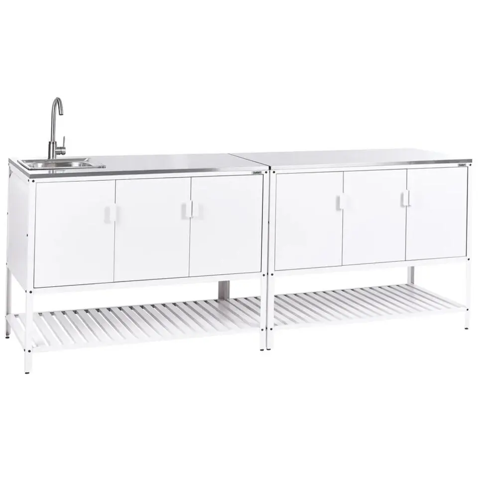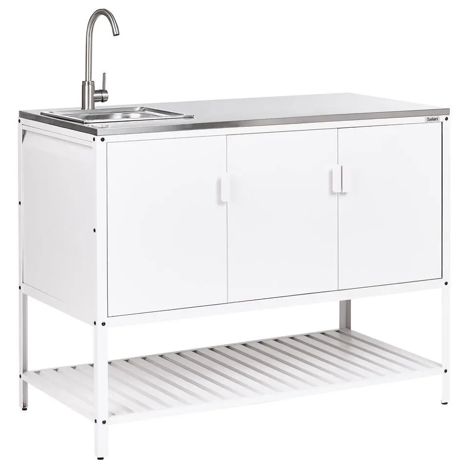 MAENZA - Buitenkeukenkast met spoelbak - Wit - Staal