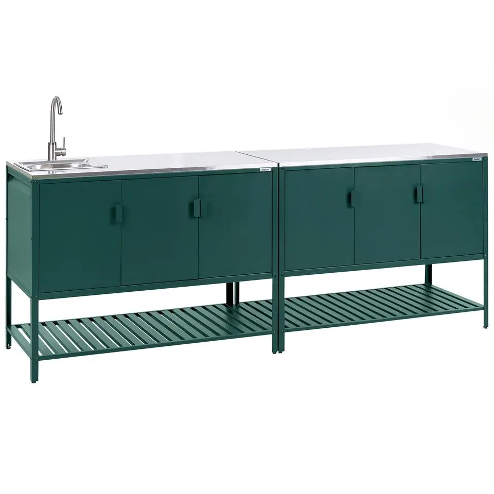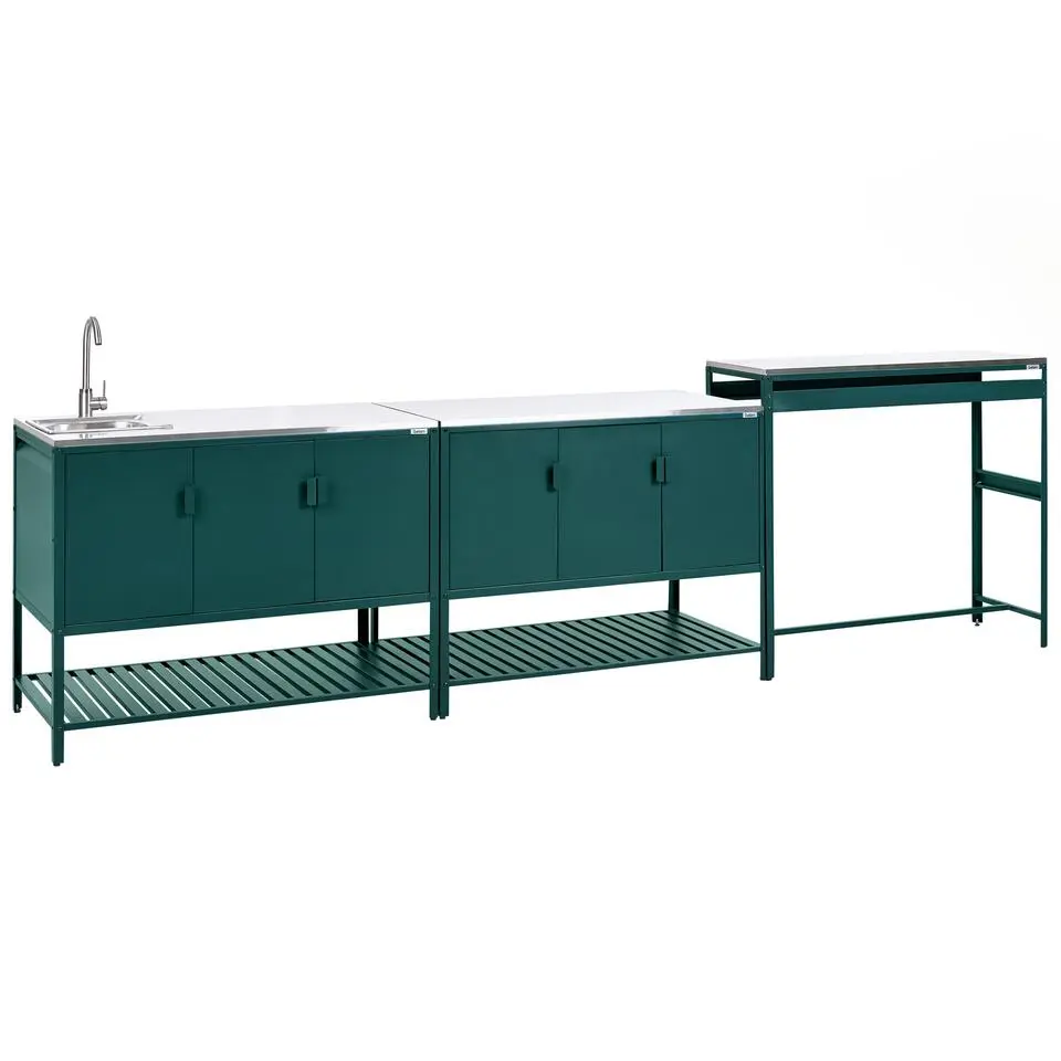 MAENZA - Buitenkeukenkast 3-deurs - Groen - Staal