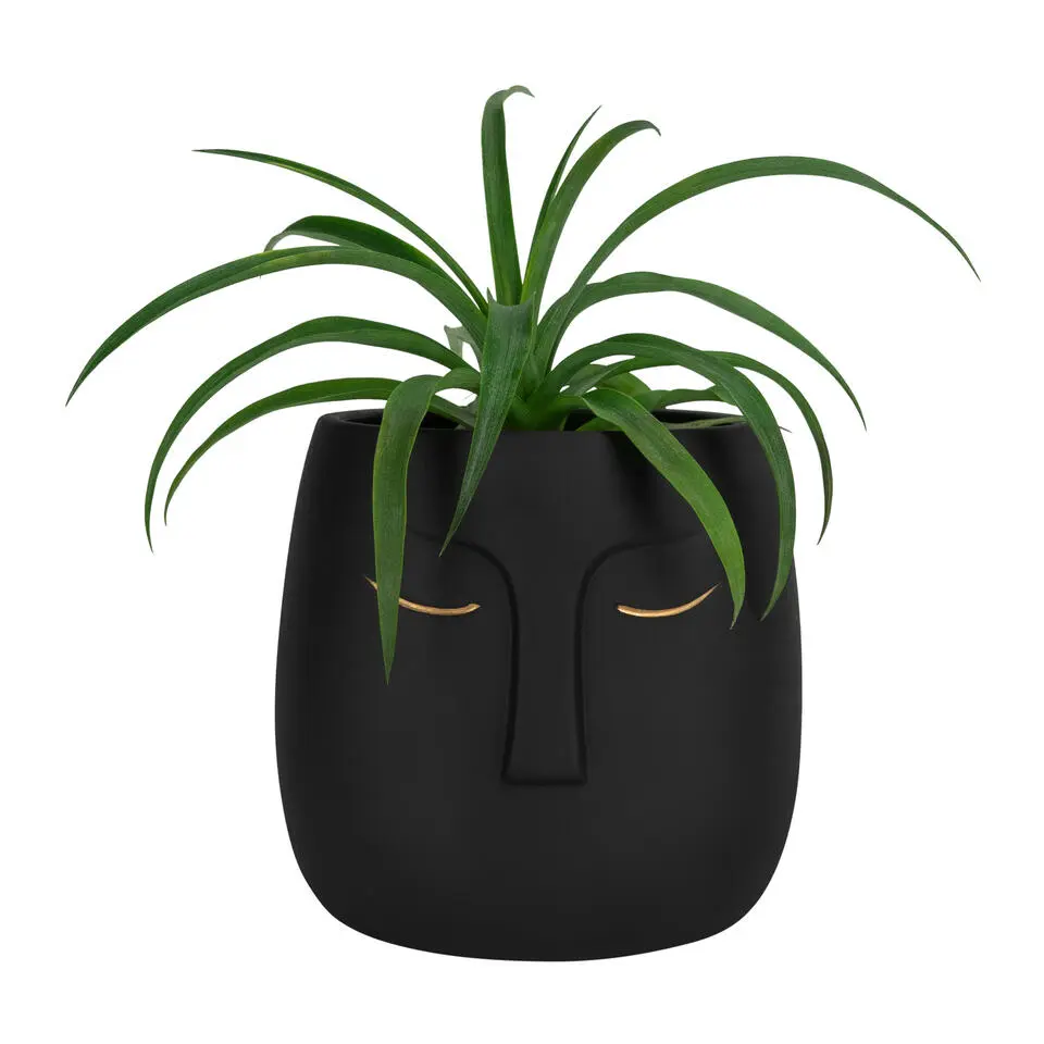 QUVIO Bloempot - Face - Beton - Zwart