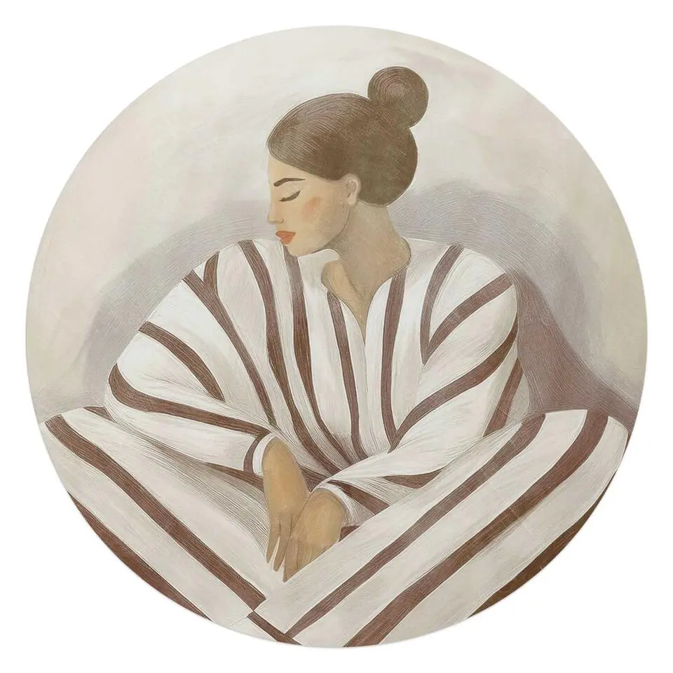 Glasschilderij Zen dame - Ø 70 - Beige