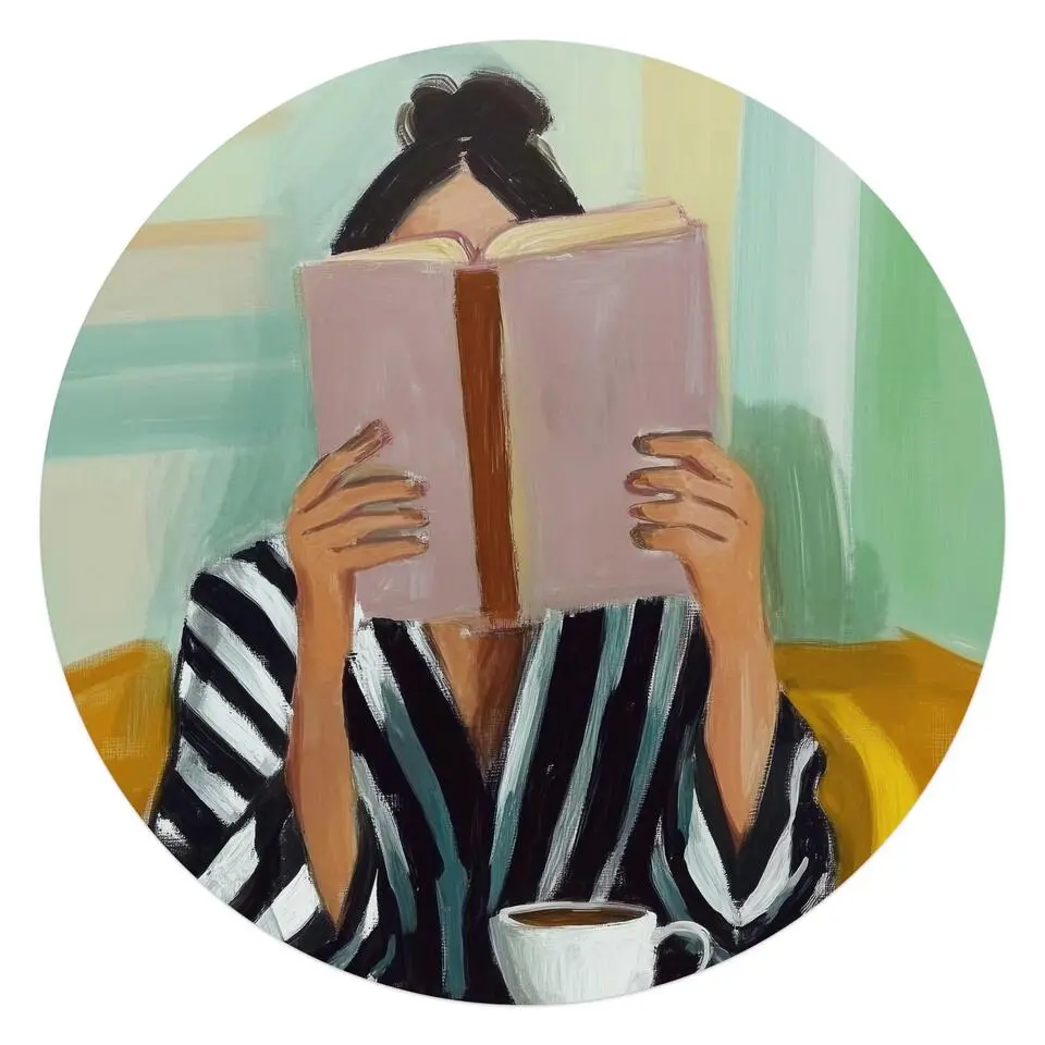 Glasschilderij Lees- en koffiepauze - Ø 70 - Roze