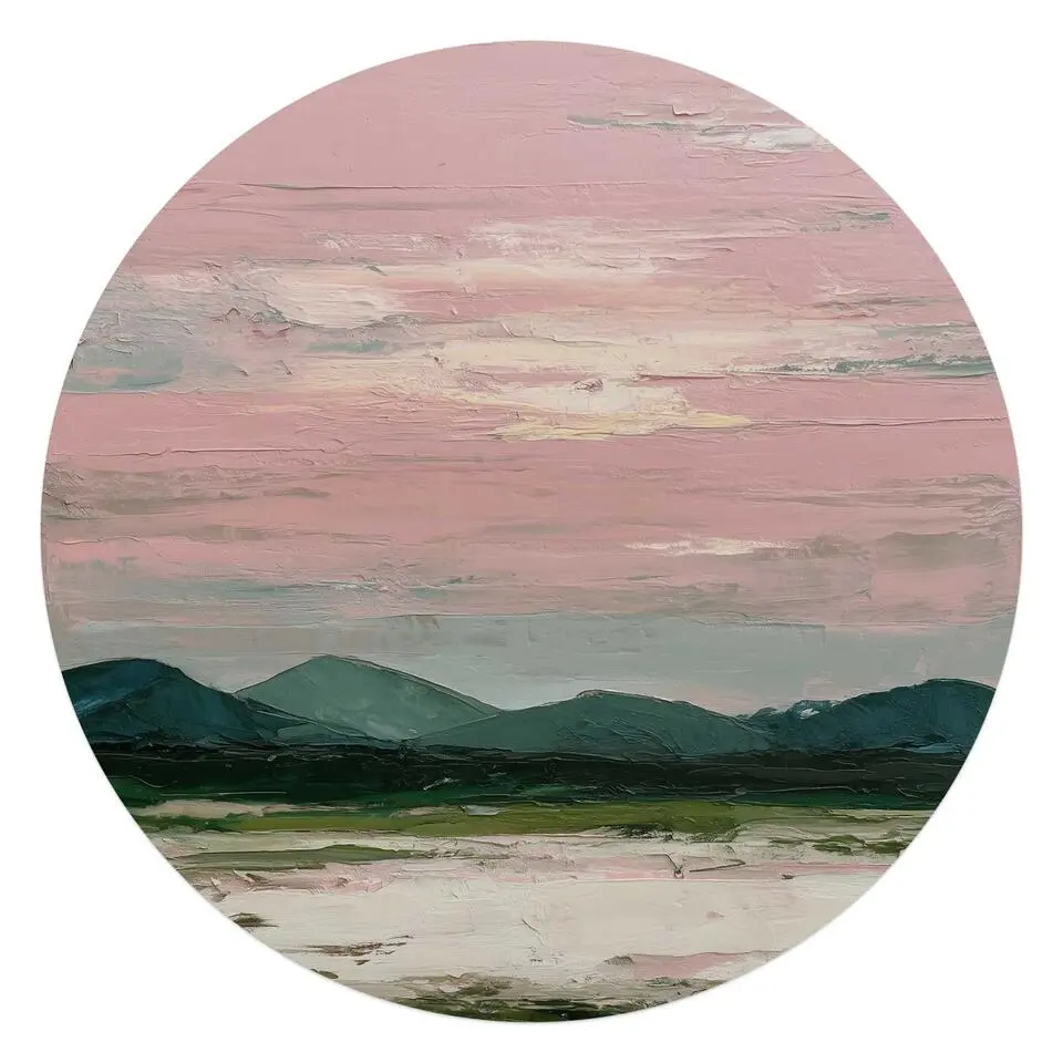 Glasschilderij Bergen in roze wolken II - Ø 70 - Roze