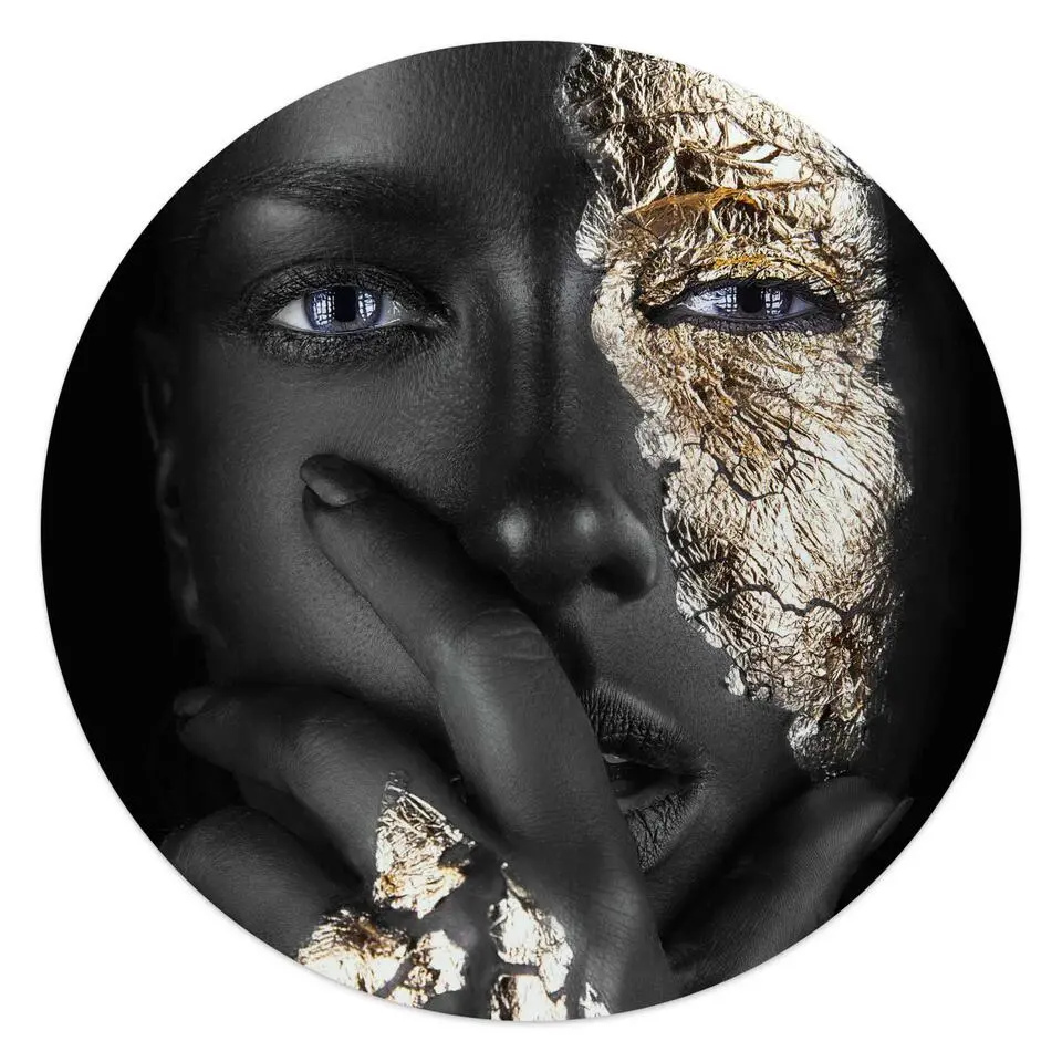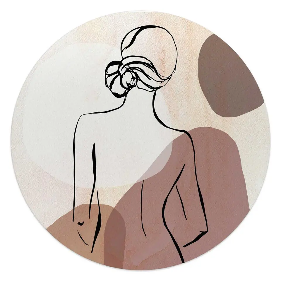 Glasschilderij Vrouw - Ø 50 - Bruin