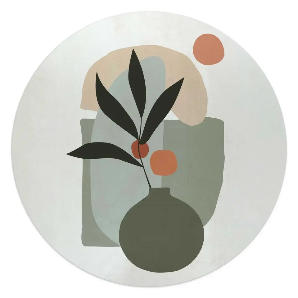 Glasschilderij Vaas met bloemen - Ø 50 - Groen