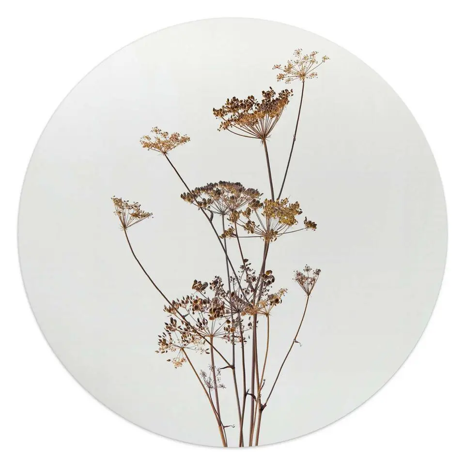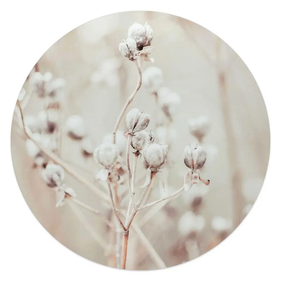 Glasschilderij Gedroogde tak - Ø 50 - Beige