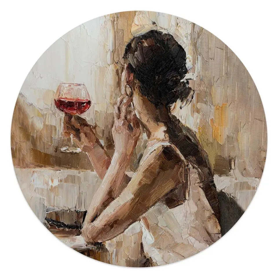 Glasschilderij Evening Wine - Ø 50 - Beige