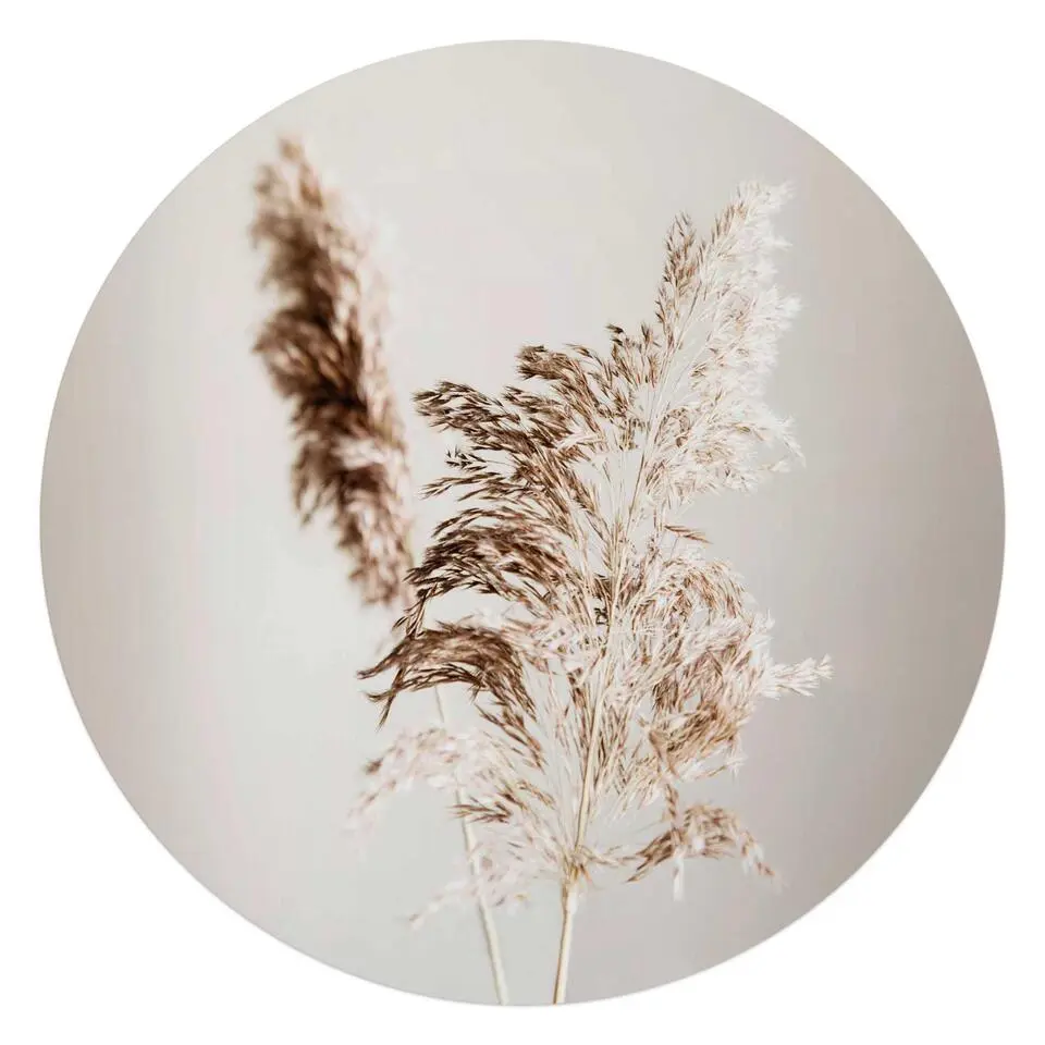 Glasschilderij Pampasgras - Ø 70 - Beige